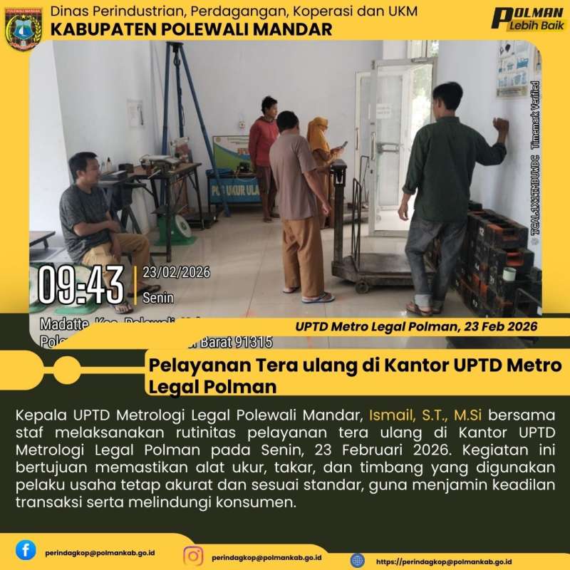 Pelayanan Tera ulang di Kantor UPTD Metro Legal Polman Senin 23 Feb 2026