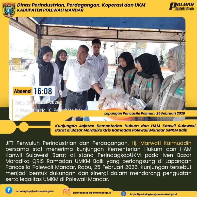 Kunjungan Jajaran Kementerian Hukum dan HAM Kanwil Sulawesi Barat di Bazar Maradika Qris Ramadan Polewali Mandar UMKM Baik Rabu 25 Feb 26