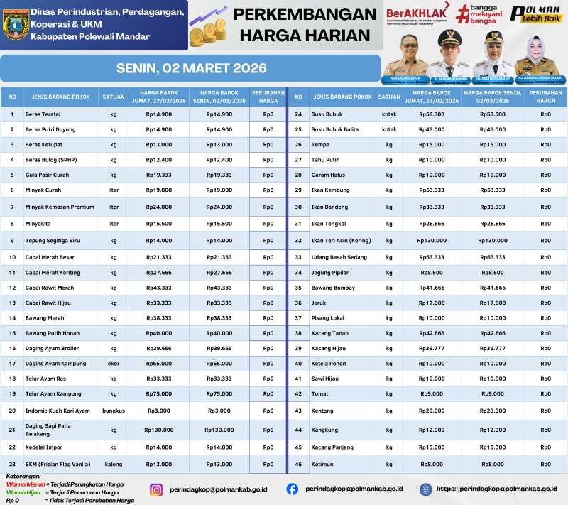 Analisis Harga Bahan Pokok – Polewali Mandar, Senin 2 Maret 2026