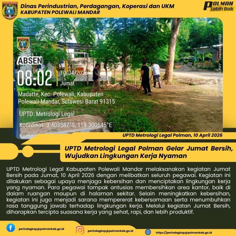 UPTD Metrologi Legal Polman Gelar Jumat Bersih, Wujudkan Lingkungan Kerja Nyaman Jumat 10 April 2026