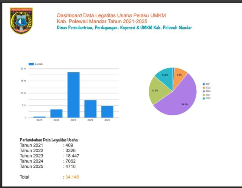 visualisasi data legalitas usaha pelaku UMKM dalam bentuk dashboard interaktif Senin 13 April 2026